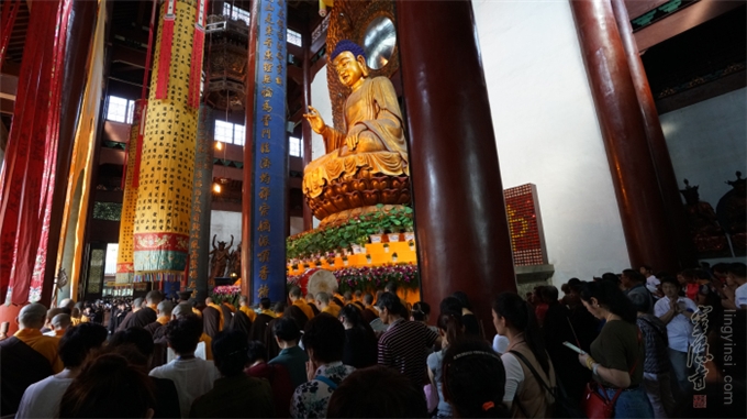5日上午,灵隐寺钟鼓长鸣,梵音呗唱。大众法师在大雄宝殿虔敬讽诵《佛说盂兰盆经》,同时举行的盛大的盂兰盆传供上供法会,让不少信众和游客感受到法会的庄严殊胜。