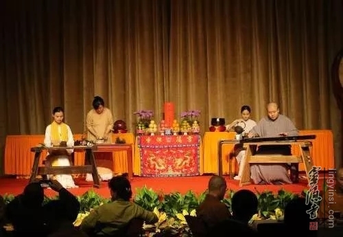 中秋普茶会上的表演节目涵盖茶艺、器乐、歌曲、朗诵、舞蹈……异彩纷呈:其中既有如水墨小品画般恬淡幽雅的古琴表演,又有令人耳目一新的佛曲新演绎,还有将茶、琴、香、花五道完美结合的供养仪式, 无不令观众在得到艺术的陶冶之外,更感受了心灵的净化。