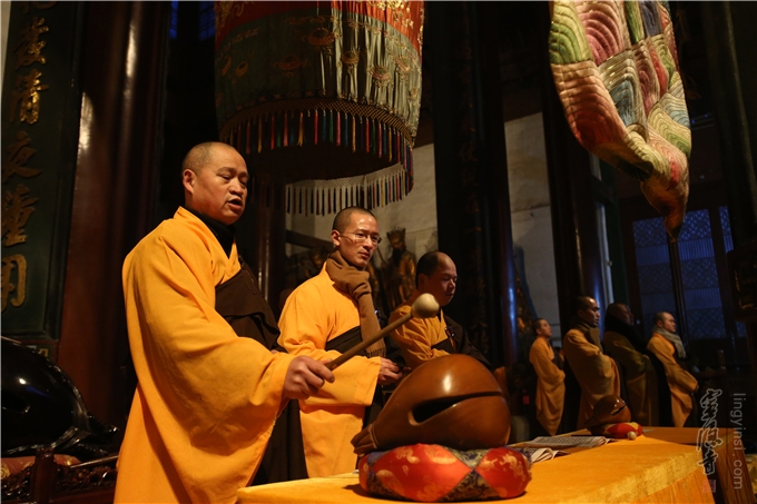 凌晨4时许, 大雄宝殿炉香乍热,梵呗悠扬,灵隐寺戊戌新春斋天法会庄严举行,灵隐寺监院觉恒法师主法拈香。
