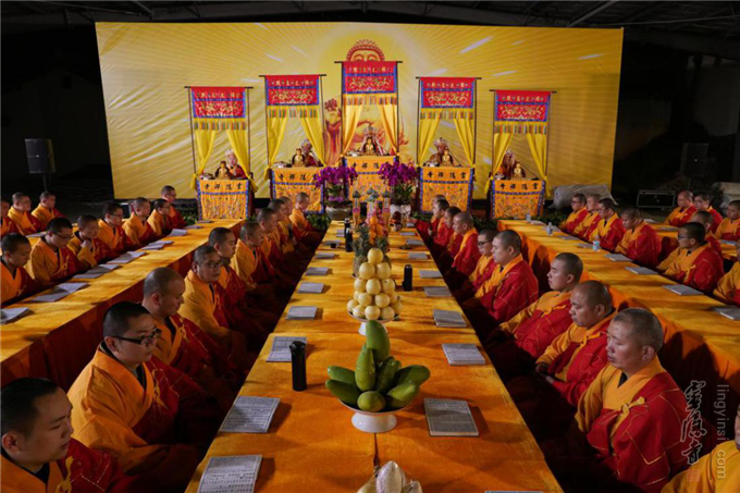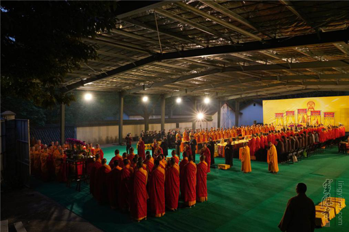 4月4日晚18时,灵隐寺举行五大士瑜伽焰口,诸法师以悠扬的梵呗,庄严的仪轨,为众有情施食、说法、皈依、授戒,令其具足正见,不再造罪受苦,以祈早日脱离苦趣,成就菩提。