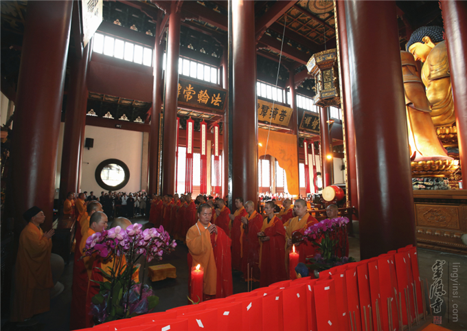 2018年4月4日,灵隐寺戊戌年梁皇宝忏法会功德圆满,灵隐寺常住法师及居士诵经拜梁皇忏悔永七日,以此功德祈愿世界和平,风调雨顺,国泰民安,海众安和。