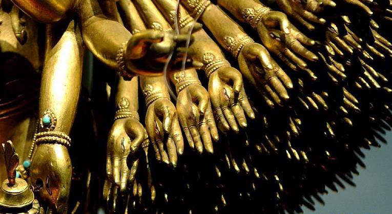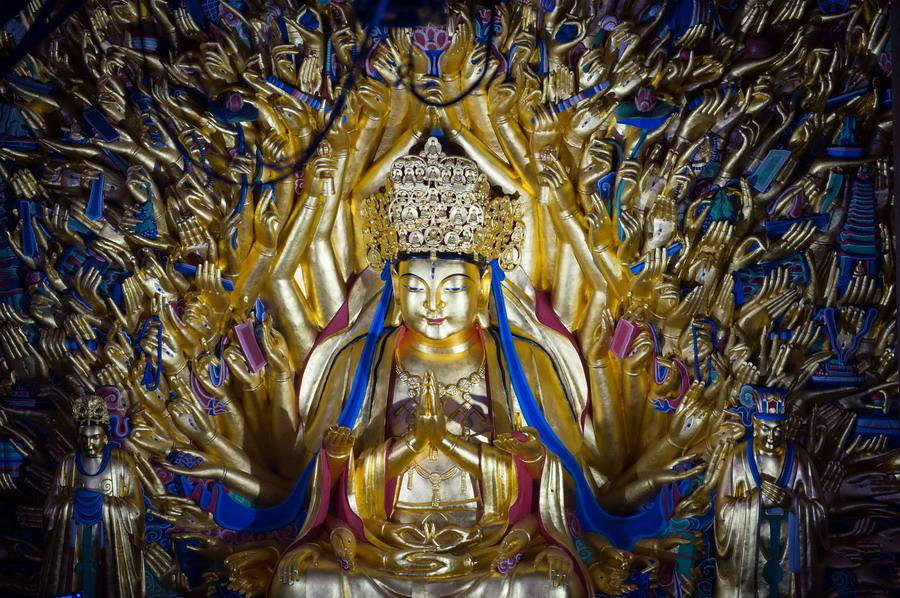 那"闻"这个字是最为关键的,众生听闻观世音菩萨的名号,观世音菩萨也听闻众生求救的音声,如是互闻才能相互感应。那么众生闻观世音菩萨是有所求,而观世音菩萨闻众生是有所应。如是感应道交,众生即得解脱。说到这个闻字,可能很多人会有疑问,既然这个闻这么重要,那干嘛不叫闻世音而叫观世音呢?我们众生不能六根互用,所以只能眼见耳闻。可是菩萨已经有大智慧,所以他可以六根互用,眼不仅能见,也能闻;耳不仅能闻,也能观。观是什么?观就是菩萨的能观智慧,而世音就是菩萨所观的境界。菩萨以能观的智慧观察世间一切苦恼求救的音声,然后本其誓愿以解除众生的痛苦,令众生快乐,叫观世音。