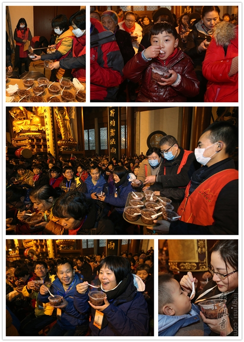 2016年1月17日,农历腊月初八,恭逢释迦牟尼佛成道日,为缅怀佛陀苦行成道,灵隐寺常住依据丛林传统举行乙未年腊八节讲经传供法会。灵隐寺方丈光泉法师、径山万寿寺方丈戒兴法师、灵隐寺监院义广法师共同主法,灵隐寺四众弟子、海内外游客数千人参加了本次活动,法会现场如律如仪,庄严有序,大众法喜充满。