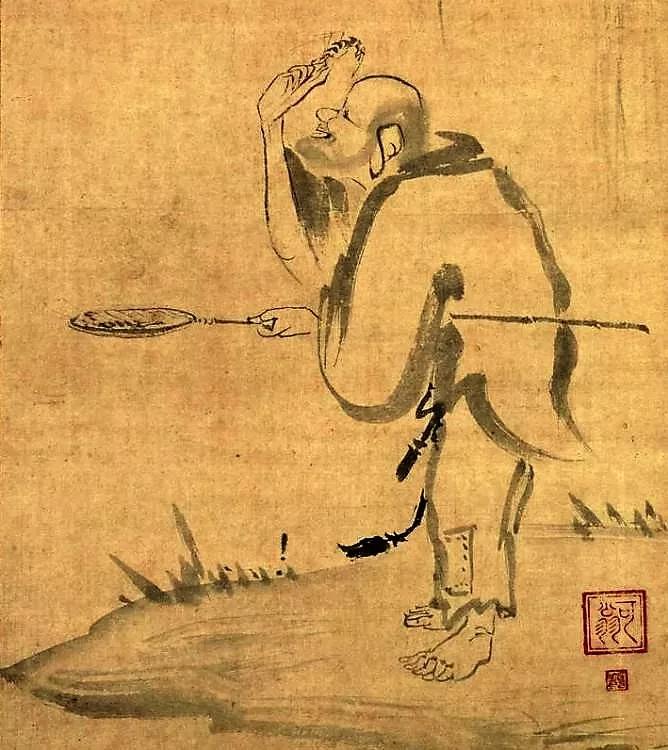 堪笑灵山老古锥,当阳抛下破木杓。