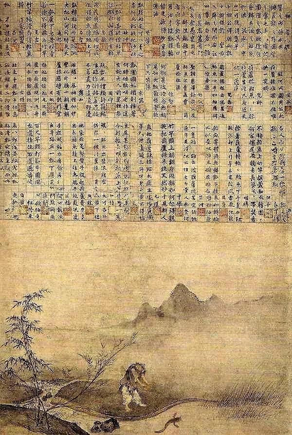 觉阿禅师认识汉字,但是不会发音,因此当瞎堂慧远禅师问他从何而来时,他就通过书写来回答。