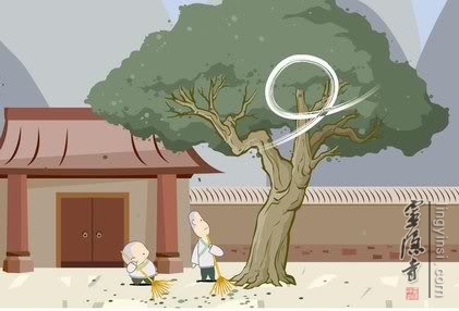 后来有个和尚跟他说:"你在明天打扫之前先用力摇树,把落叶统统摇下来,后天就可以不用扫落叶了。 "
