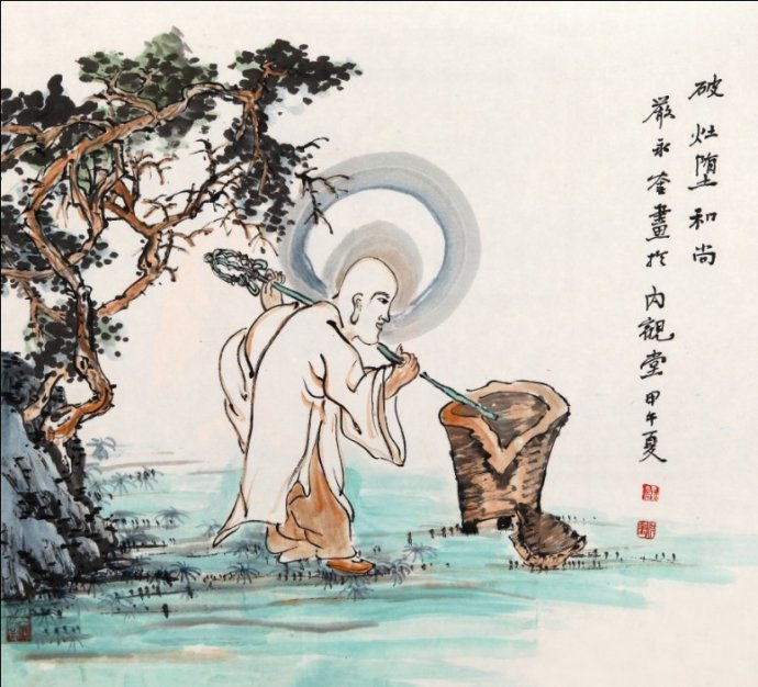 师一日领侍僧入庙,以杖敲灶三下曰:"咄!此灶只是泥瓦合成,圣从何来?灵从何起?恁么烹宰物命。"又打三下,灶乃倾破堕落。