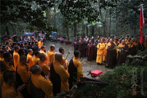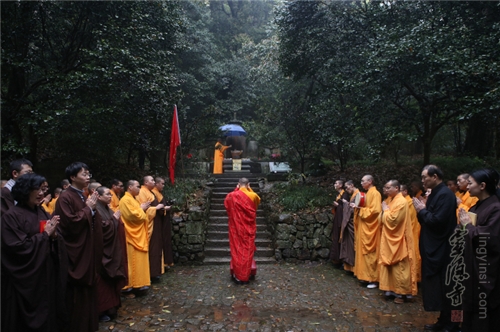 On April 3, 2016, over 100 lay Buddhists and Buddhist masters of Lingyin Temple and Hangzhou Buddhist Academy went to the relic pagoda of Master Lianchi for tomb sweeping and ancestor worship on the occasion of Qingming Festival. The commemoration of past venerable patriarchs motivates the Sangha to wholeheartedly work hard on the pursuit of enlightenment and the three practices of Buddhism (morality, meditation and wisdom) for self-interest and altruism.