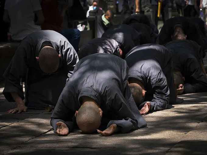 不管刮风、下雨、日晒都要一路坚持;不管是泥巴路、砂石路都要头面顶礼。虽然辛苦,但有菩萨的慈光照摄,有师父的榜样在那边,有同修师兄的鼓励与无形的督促,就能克服万难,易生起至诚之心。