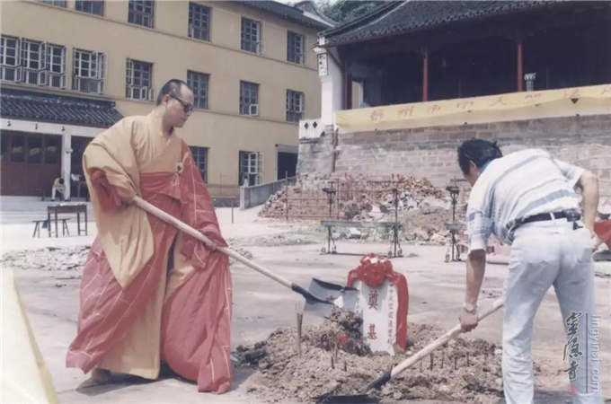 ▲光泉法师参加中天竺法净禅寺圆通殿奠基仪式