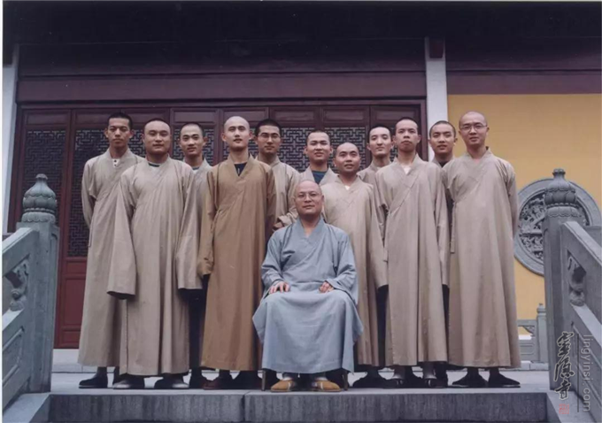 ▲光泉法师与杭州佛学院筹建时期的学员一起