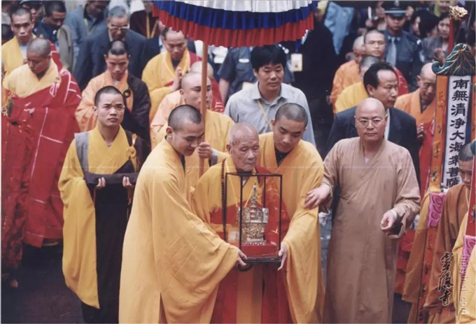 ▲光泉法师与木鱼长老一起参加释迦佛螺髻发舍利供奉法会