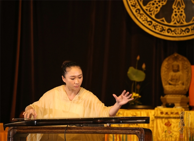 The Mid-autumn Festival tea party began with art performances, including the performances of classical musical instruments, such as Guqin (Chinese zither), Yangqin (dulcimer), flute, etc. A special session – prize-winning game quiz on knowledge of Buddhism – was included this year, and people knew more about Buddhism and had great fun by playing quiz game with the audience. Buddhist masters of Lingyin Temple also gave performances of fragrance, flowers, tea, qin (a Chinese musical instrument) and calligraphy that combined the essence of the Chinese traditional culture and Buddhism.