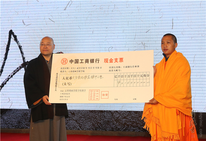 At the end of the activity, Ven. Guangquan donated ¥2,144,000 raised at this charity auction to Ruili Bodhi School on behalf of Yunlin Charitable Foundation and delivered a speech, in which he expressed his hope that all people can adhere to the Buddhist spirit of benevolence, inclusiveness and gratitude, and practice Buddhism to better serve the society in helping create a perfect pure land on earth.