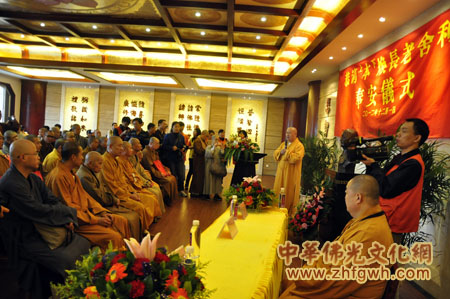 本次殊胜的仪式,由华严寺方丈印觉法师主持,40多家寺院代表和本焕长老徒子徒孙、法子法孙共同出席仪式。仪式上,获得经审核具有迎请供奉本焕长老舍利资格的寺院代表依次上台,由印顺法师向这些寺院代表颁发灵骨舍利恭迎供奉证。
