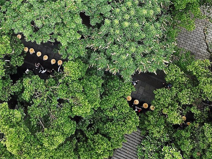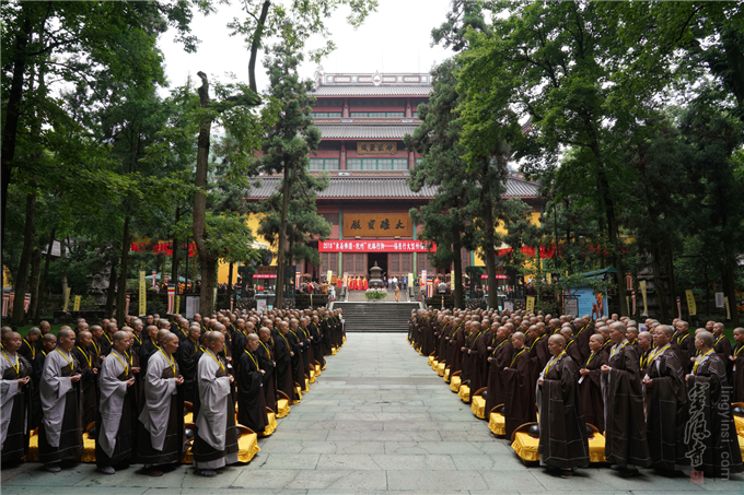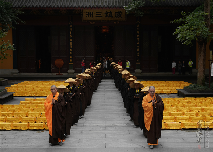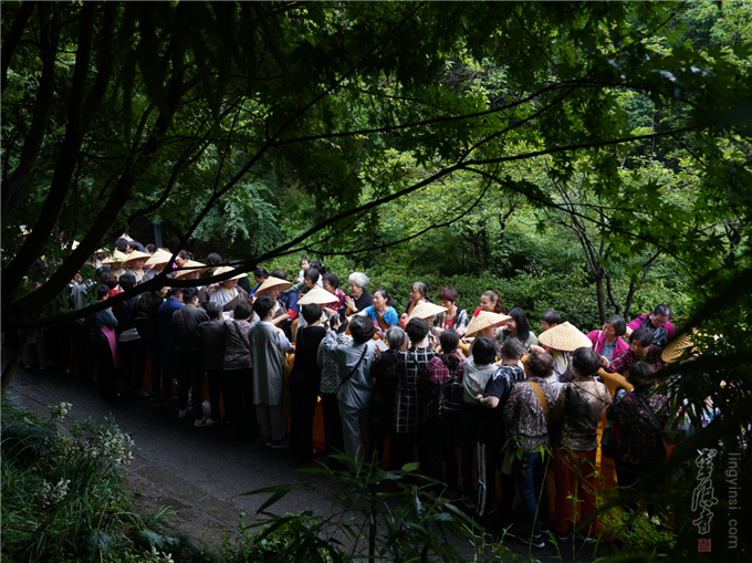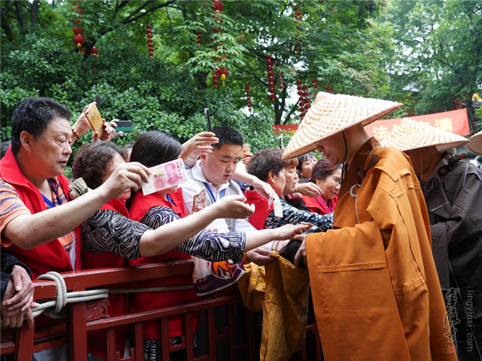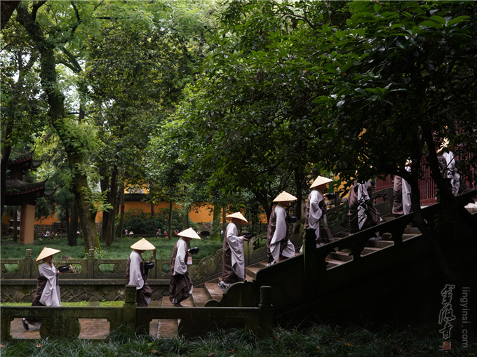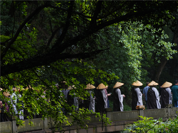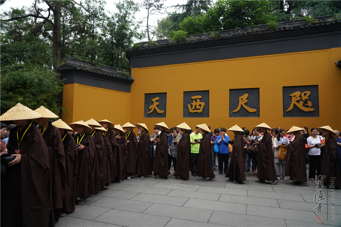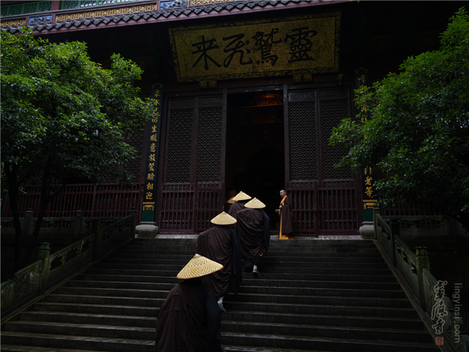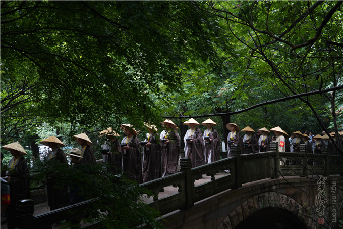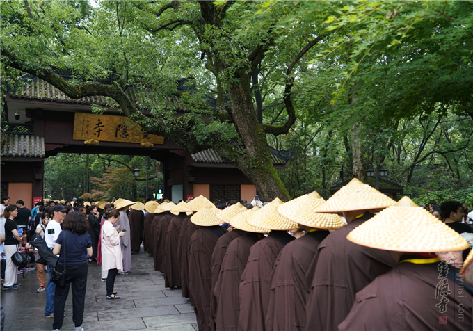 经过两个多小时的行脚,托钵僧众进入灵隐寺。