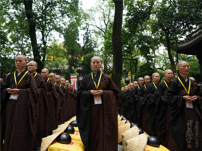 中午,杭州灵隐寺在紫竹广场设千僧斋供养十方僧众。大众共同祈福,祈祷世界和平、民众平安吉祥。