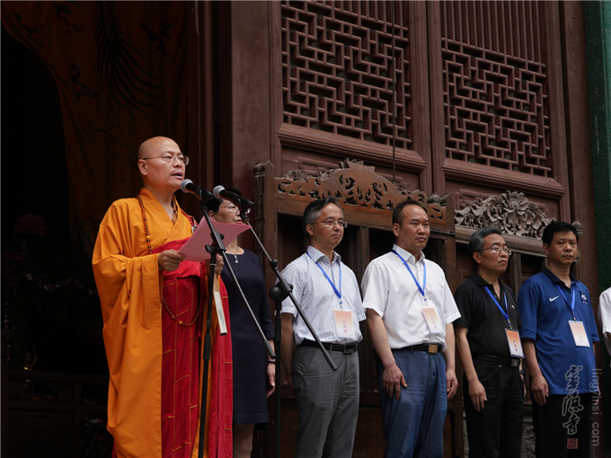 灵隐寺方丈光泉法师在捐赠仪式上讲话。他说:"佛教传入中国后,经过长期演化,同中国儒家文化和道家文化融合发展,最终形成了具有中国特色的佛教文化,给中国人的宗教信仰、哲学观念、文学艺术、礼仪习俗等留下了深刻影响"。因此,博大精深的中华传统文化,佛教文化"三分天下有其一"。弘扬传统文化自然是我们当代杭州佛教义不容辞的责任,我们将一如继往地为把杭州建设成"独特韵味、别样精彩"世界名城贡献力量。