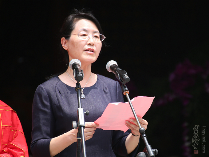 杭州市政府副市长陈红英在捐赠仪式上讲话。她说:十九大报告提出了精准扶贫的理念,杭州市佛教协会积极响应号召,为此制定了相应的精准扶贫计划,最大限度地发挥杭州佛教在服务社会方面的积极作用。扶危济困,服务社会,我们一路同行;慈心悲愿,利乐有情,我们任重道远。