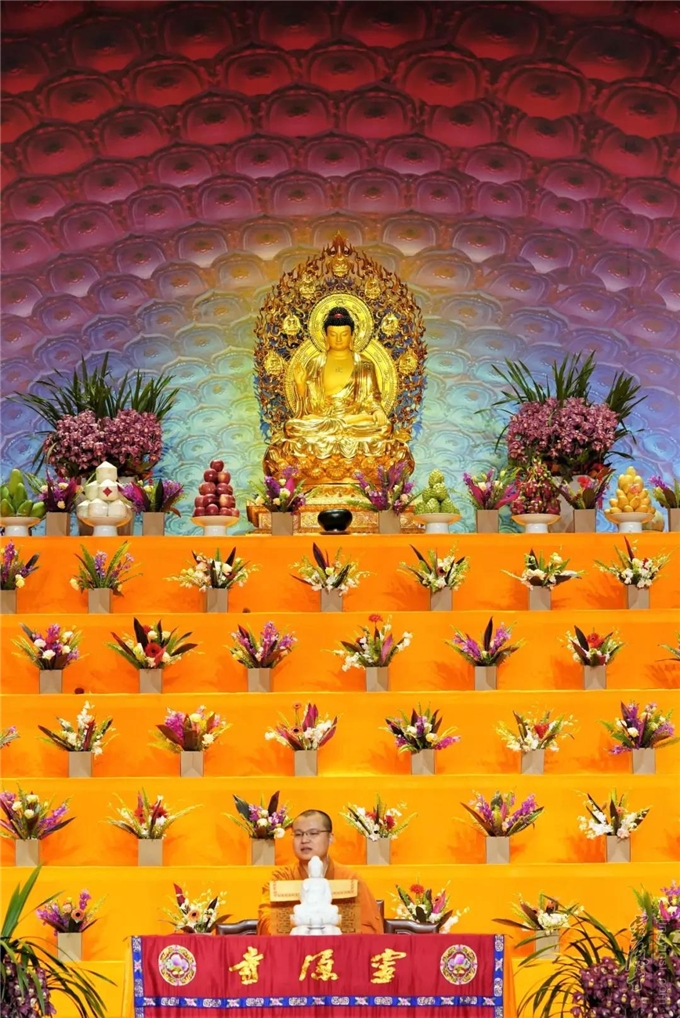 众人以传供方式感恩佛陀、感恩三宝,同时祈愿佛日增辉、法轮常转、世界和平、海众安和。