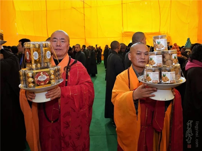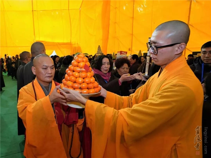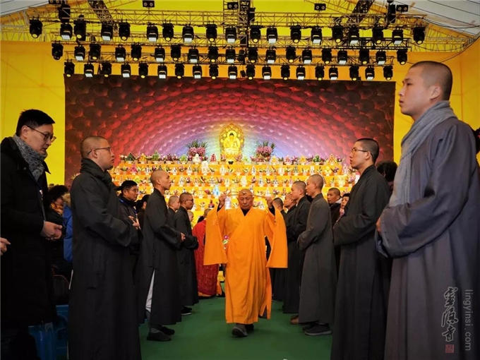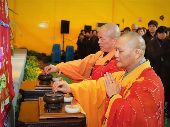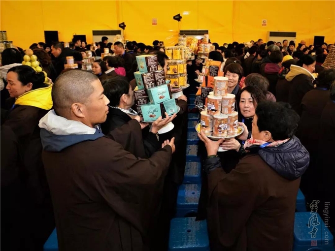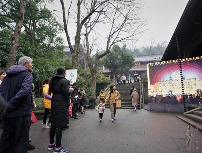 是日,杭州灵隐寺在紫竹广场隆重举行"己亥腊八节讲经传供祝圣祈福法会",引领大众,秉承佛教慈悲、包容、感恩的精神,服务大众,服务社会,用实际行动去践行人间佛教精神,建设人间净土。