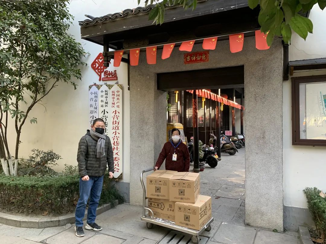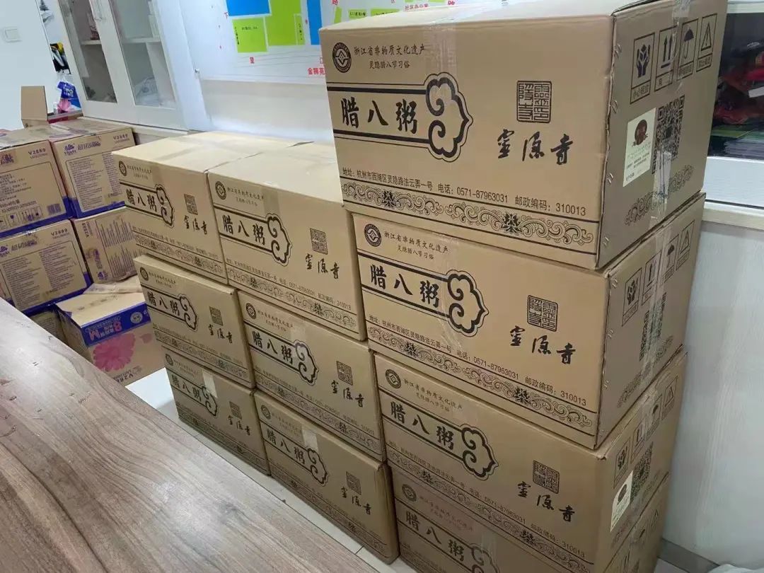 ▲中国邮政杭州市分公司派送灵隐寺腊八粥到社区