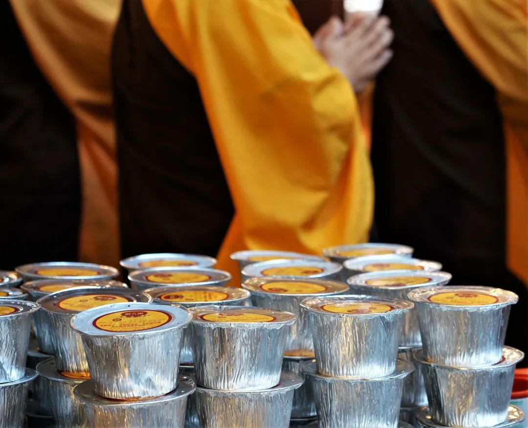 2.灵隐寺的腊八粥,全部采用环保铝箔碗包装,切勿直接将铝箔碗放入微波炉加热(以免发生意外)。推荐把粥倒入常用炊具内加热。