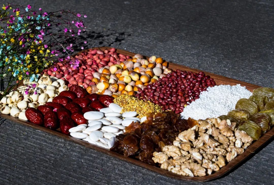 ▲灵隐寺熬制腊八粥所用的十二种食材