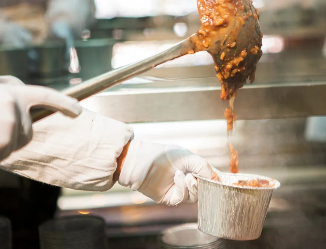 冷却包装:熬好的腊八粥放在通风处稍冷后,在“分杯区”分装到环保铝箔碗,再次冷却后“封杯”、“装箱”。在此特别提醒大家,切勿直接将铝箔碗放入微波炉加热。