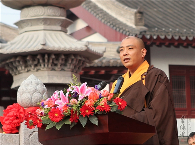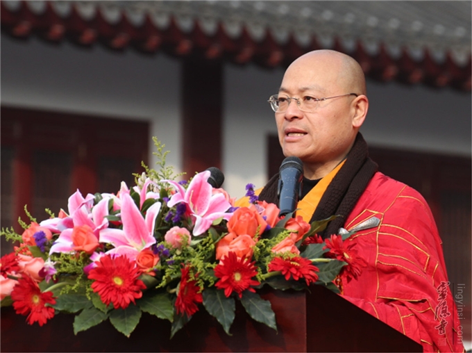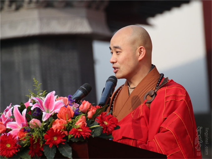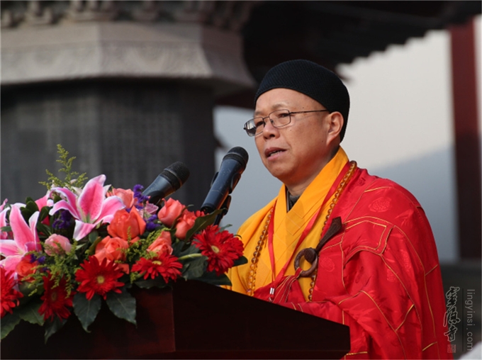 中国佛教协会副秘书长、浙江省佛教协会副会长、杭州市佛教协会会长、杭州灵隐寺住持光泉法师致词