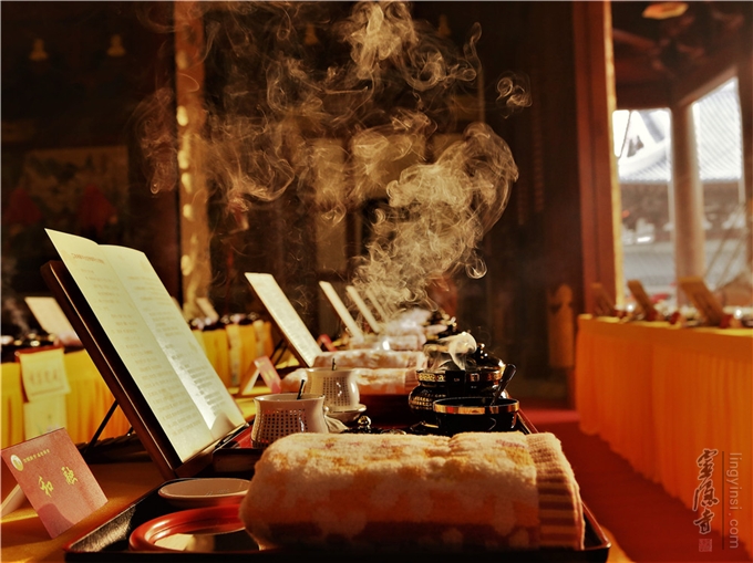 开光法会如律如仪,在悠扬的梵呗中,来自佛教界的高僧大德,拈香主法,以庄严清净的佛教仪轨,30余位主法法师共同主持开光仪式。