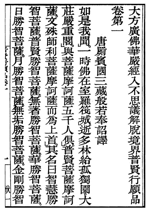 德宗皇帝获此梵策,不胜欢喜,对此梵本视同拱璧。贞元十二年六月五日,手诏般若三藏,于长安崇福寺译梵文为华语。(般若三藏,华言智慧,罽宾国人。相貌魁伟,戒律精严。唐德宗时,来游此土,居京师,充义学沙门。)至十四年(798)二月二十四日,译成四十卷进上,是为《四十华严》。