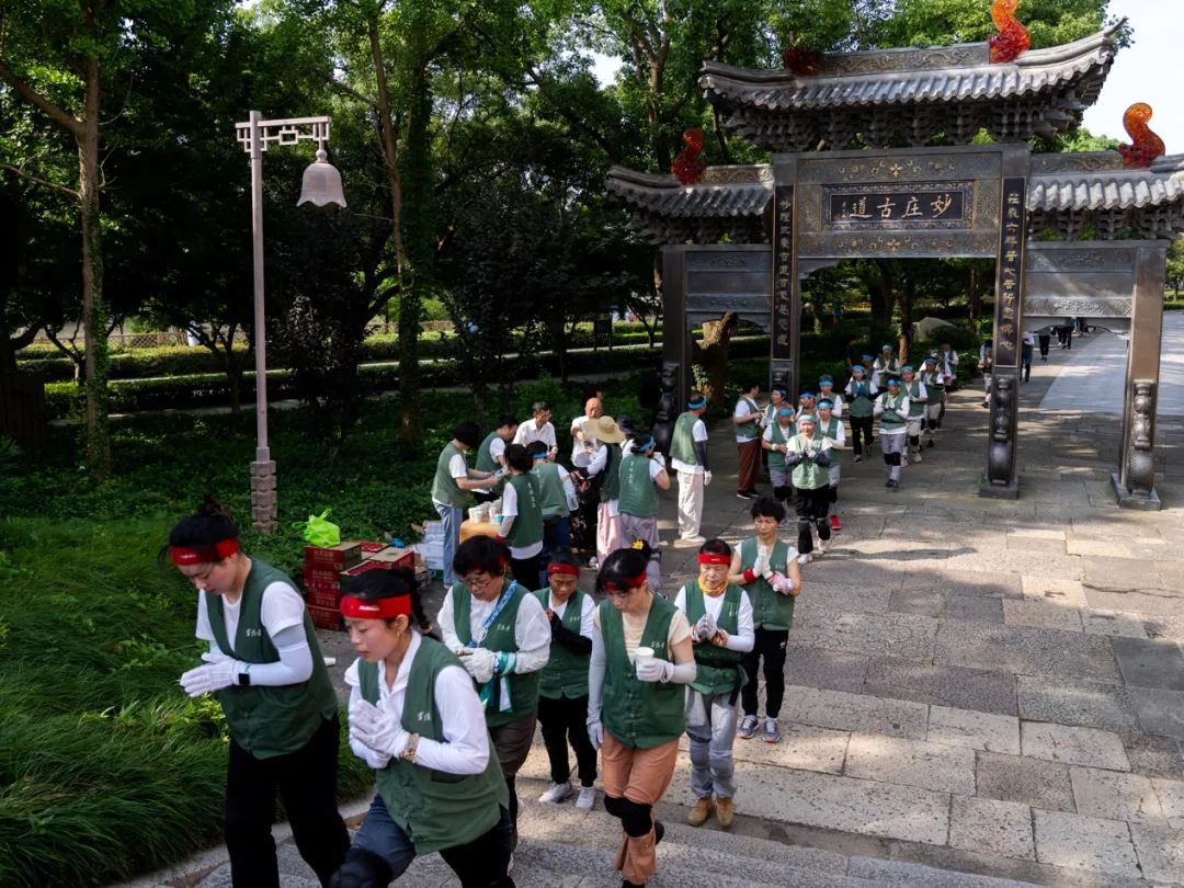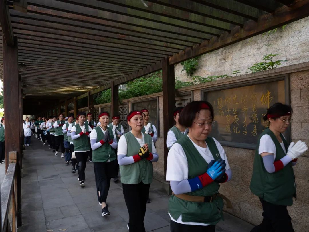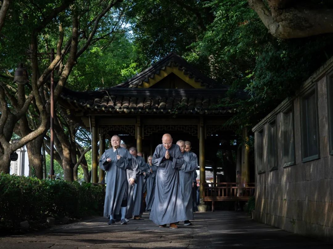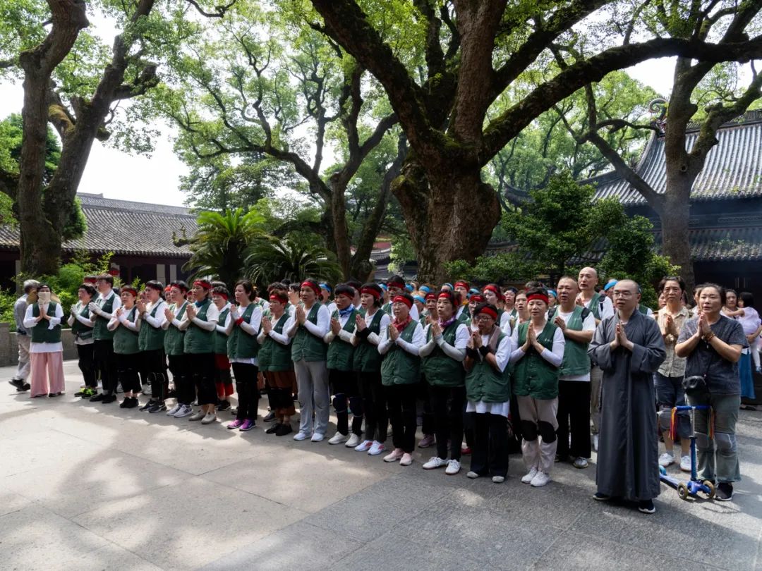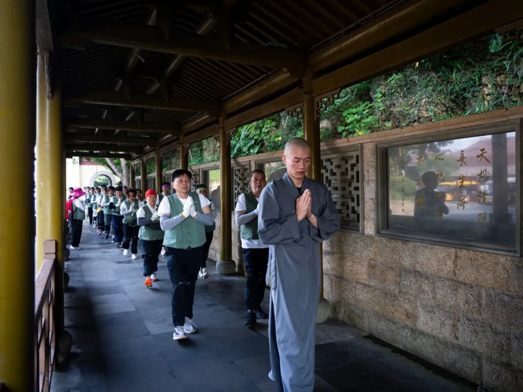 2024年7月11日,农历六月初六,杭州灵隐寺方丈光泉大和尚带领灵隐寺常住法师和居士,三步一拜朝礼普陀山观世音菩萨道场。早上七点二十分,朝山队伍在灵隐寺方丈光泉大和尚的带领下,从普陀山码头山门牌坊起香,沿上香古道妙庄严路礼敬叩拜而行。自古以来,妙庄严路就是普陀山朝圣的主要香道。该上香古道起自短姑道头,经白华庵、正趣亭、三圣堂,依白华山循坡蜿蜒,至普济寺,全程约三千八百米。时值盛夏,天气炎热,丝毫不影响朝山大众坚固的信心和愿力,大家在清脆引磬声的领引下,整齐划一地三步一拜,向着观世音菩萨无尽的慈悲与智慧努力前行。朝山队伍绵延数百米,沿途游客或出于好奇,或深受感染,肃然恭立,驻足观视,莫不动容,还有许多人自愿加入朝山队伍,随喜大众的殊胜功德。灵隐寺云林志工团参与护持此次朝山的志工们,从饮水的准备、药品的发放到垃圾的收集,一丝不苟,保证了朝山活动的有序进行,展示了杭州佛教界的良好形象。临近中午十一点,朝山队伍陆续抵达普济寺。通身的疲乏和满脸的汗水在走进普济寺圆通宝殿的那一刻,都升华为甚深的法喜和无上的清凉,许多人泪水喷涌而出,欢喜雀跃,得未曾有。在观世音菩萨的慈眼注视下,朝山大众至诚回向,盼望着明年再来朝山,更发愿尽此一报身,往生极乐国,亲炙观音大士,共聆慈悲法音。《华严经》云:“善男子!于此南方有山,名补怛洛迦,彼有菩萨名观自在。”普陀山自古以来便被尊为观世音菩萨道场,其实,观世音菩萨的法身遍一切处,接物利生,随机应现,原不固定住于某地;观世音菩萨的悲愿无量无边,寻声救苦,有缘即应,更不拣择朝与不朝。朝山之人所礼拜的,是我们内心的清净自性;所折服的,更是我们心中的我慢高山;所踏践的,也是我们自己觉悟的成佛之路。念佛一声,福增无量;礼佛一拜,罪灭河沙。每一声佛号,每一次顶礼,乃至每一句鼓励,都是业障的消除,我慢的折伏,资粮的积聚,福慧的增长!