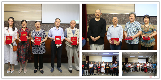 讲座结束后,演讲厅内还举行了"千江印月——第三届云林公益书画联展"活动的颁奖仪式,共有来自杭州8个街道及杭州图书馆佛学分馆的63名作者获奖,此外还有5个作品获得由参观者投票选出的"最佳人气奖"。卢家华先生、三墩镇文化站站长朱嫣红、采荷街道文化站站长戴志明分别为金、银、铜奖及最佳人气奖获得者颁发了证书和精美奖品。
