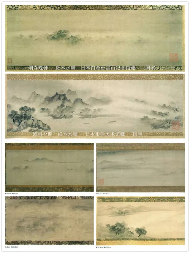 画面上都有"道有"的印章,是室町幕府的三代将军足利义满,他把"八景"分割开来,藏在别墅"北山山庄"里,此山庄后更名为"鹿苑寺"就是现在的京都名胜"金阁寺"。在日本被称为"中国风格禅寺建筑的顶点"。