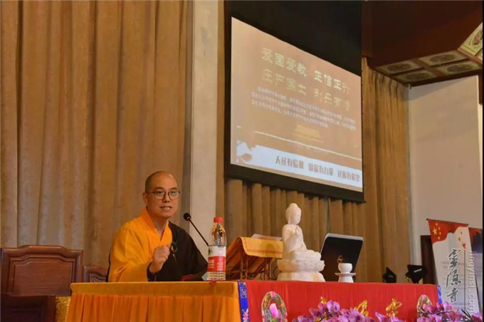 "慈悲、包容、感恩"是杭州灵隐寺秉承的理念。门芝法师在开示前说:学习佛法要有一颗感恩的心。感恩,首先,要知道这个世间谁对你有恩德,要报恩。我们要感恩国家,因为国家繁荣稳定,我们才有这样一个安定的环境修学佛法。没有强大的国力,没有这么好的社会环境,寺院的建设,出家人弘法利生,大众学佛的因缘等都不会如当今盛世这样吉祥顺遂。所以,我们要对祖国感恩,爱戴我们的国家,遵守国家的法律法规。法律法规,是构建和谐国家的基石,是支撑高楼大厦的支柱,给了我们安定的环境,给了我们更多的修学佛法的自由空间。