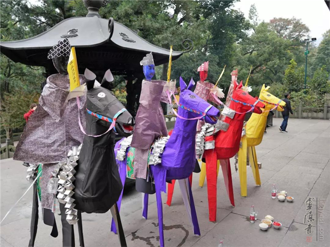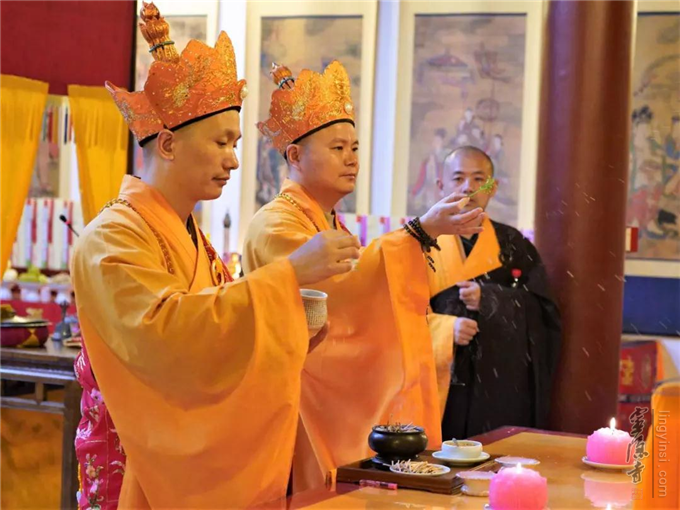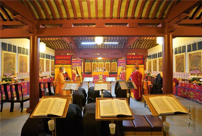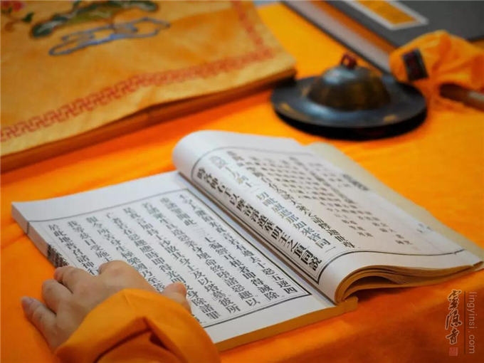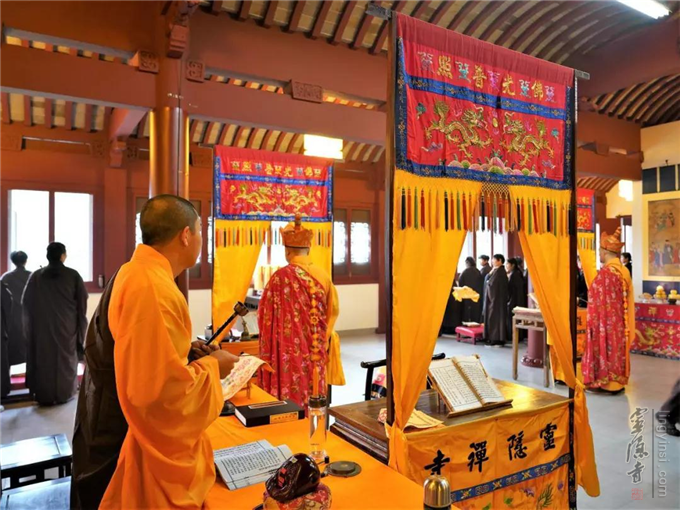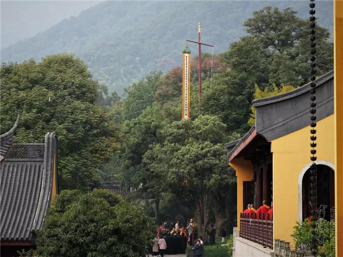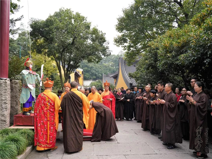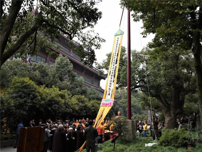 上午9时,杭州灵隐寺水陆法会内坛举行发符悬幡仪式。