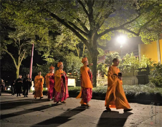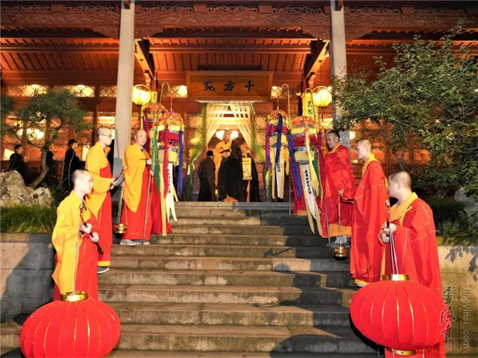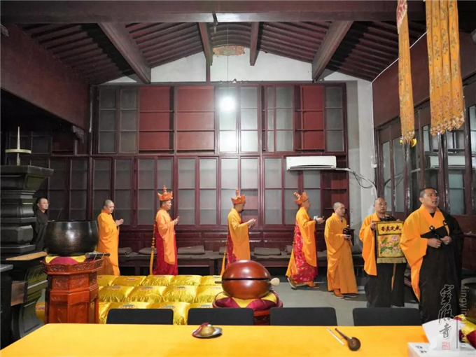 凌晨三点,杭州灵隐寺水陆法会内坛灯火辉煌,檀香清远,内坛结界仪式隆重开启。法师带领诸功德主念诵经文、举诵梵呗,秉持正念,用心作观,发心清净,虔诚礼拜,恭请诸佛、菩萨等圣众光临坛场。