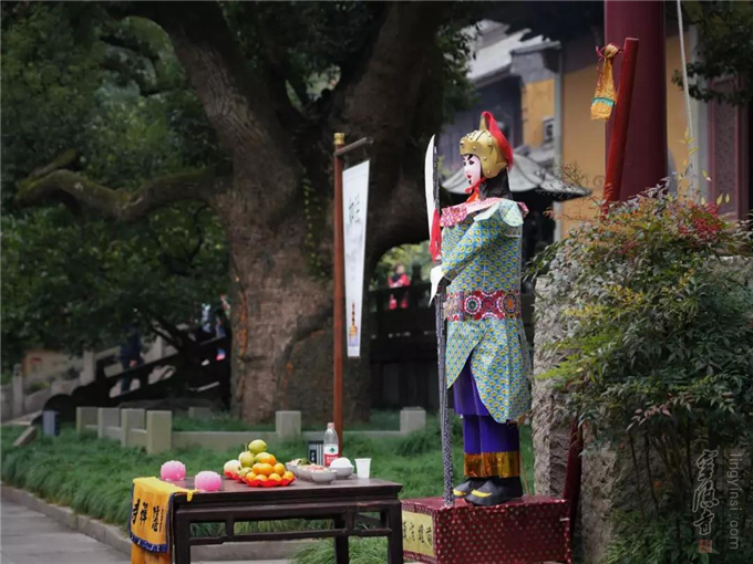 内坛法师在完成发符仪式后,与斋主一起到大殿前的镇坛大将军前奉香叩拜、唱诵经文。镇坛大将军的主要作用是维护法会秩序,使法会能够顺利进行。