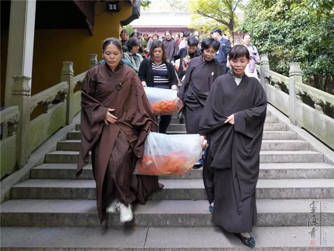2018年10月23日(农历九月十五),杭州灵隐寺戊戌"法界圣凡冥阳两利水陆大斋胜会"进入第三日,整个水陆法会的轴心——内坛法事正式开始。当天法会的内坛佛事包括,洒净结界、发符悬幡、放生等。外坛与会僧俗大众依照水陆仪轨,继续举行诵经、拜忏、持咒、念佛、回向等系列佛事活动。