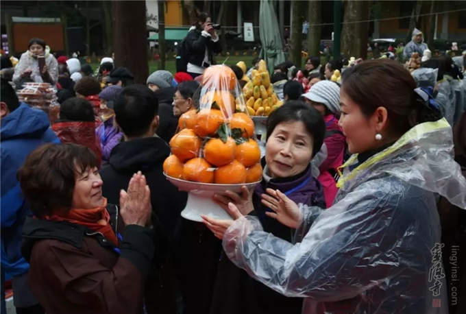 5.施粥民众。灵隐寺熬制的腊八粥,除了供佛和送居士信众之外,还要分享给普通民众。灵隐寺面向社会施送腊八粥,由僧人和志工一起把腊八粥送到各大社区、养老院、福利院等慈善机构等处,以及送给学生、民工、环卫工人等。目前,灵隐腊八节馈送腊八粥数量,居全国之首。