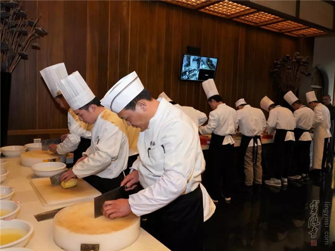 厨艺竞赛以"特色、创新、健康"为主题,四个素食烹饪制作团队30多位大厨向众人展示灵隐寺精湛的素食制作厨艺。40多道灵隐寺的精美素食,让评委和观摩者赞叹不已。