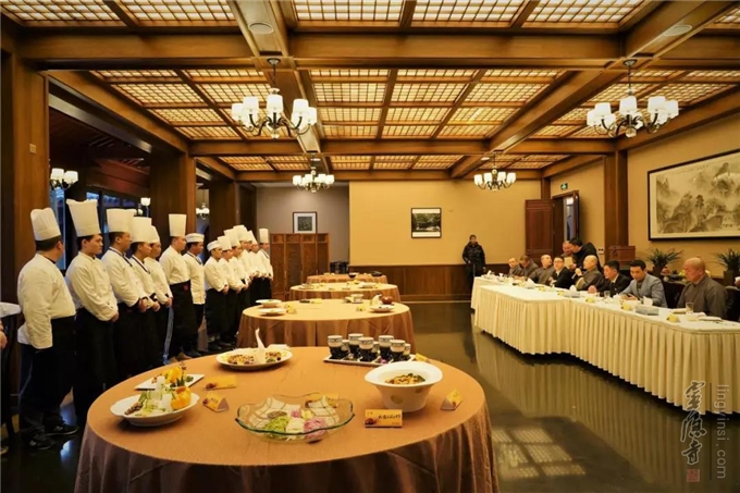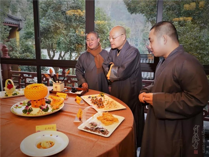 2019年1月25日下午,杭州灵隐寺举办素食厨艺竞赛。厨艺竞赛特邀中国饭店协会酒店星厨委主席、中国烹饪大师、君澜酒店集团餐饮总监吴俊霖,中国烹饪大师、西湖山庄餐饮部经理刘文杰,杭州九里云松度假酒店行政总厨徐国安担任评委。杭州灵隐寺方丈光泉大和尚与诸常住法师参与厨艺竞赛评比。