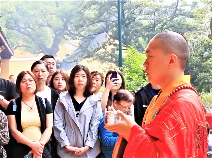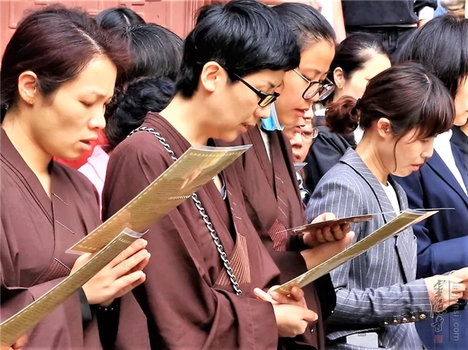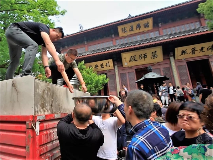2019年4月19日(己亥农历三月十五),杭州灵隐寺在药师殿前举行放生法会。在悠扬的梵呗声中,法师引领居士诵经回向,友情物命,皈依三宝,发心向善,勤积资粮,离苦得乐。法会现场,殊胜庄严。
