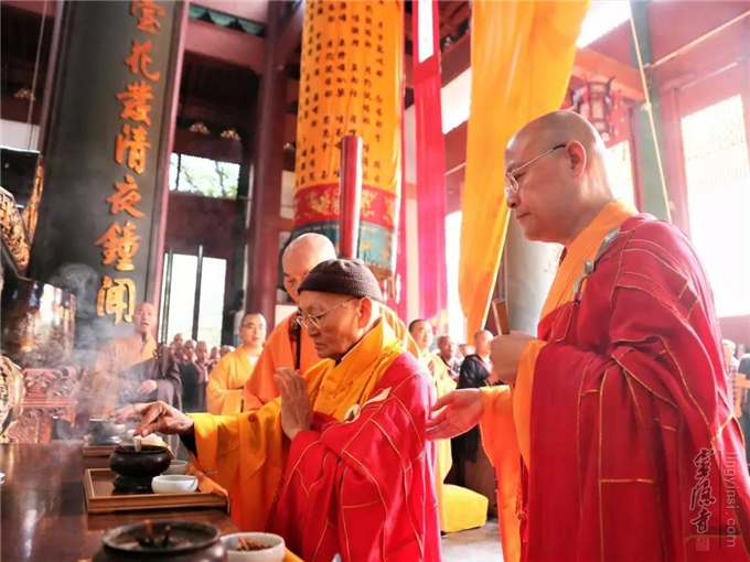 ▲2013年桂月 妙峰长老在杭州灵隐寺大雄宝殿上香