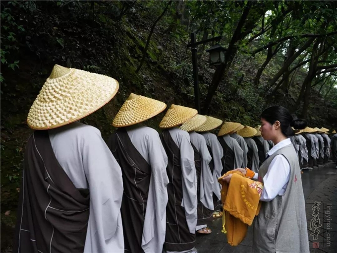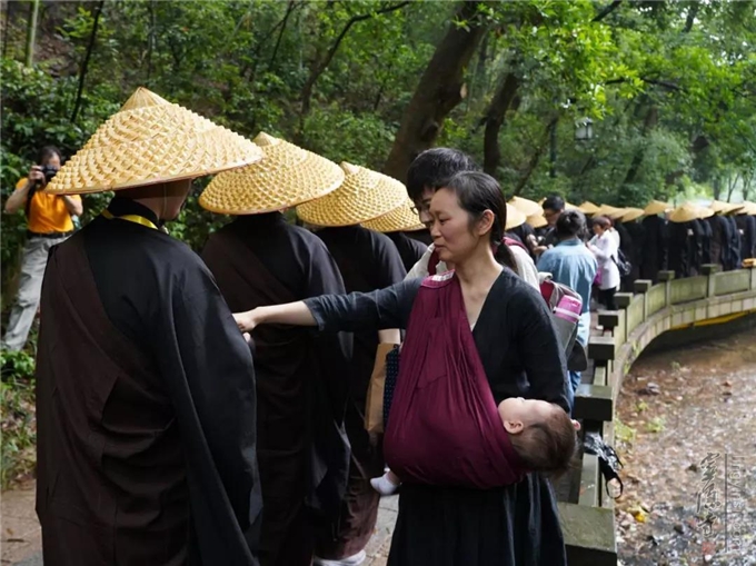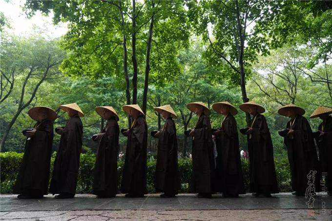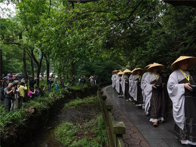 每逢农历四月初八佛诞日,杭州灵隐景区热闹非凡。从上天竺法喜讲寺至灵隐寺的路上,一行浩浩荡荡的行脚僧缓步而来,他们头戴竹笠、身披衲衣、手托钵盂、脚踏芒鞋,步伐稳健,神态安详,接受沿途民众的供养。