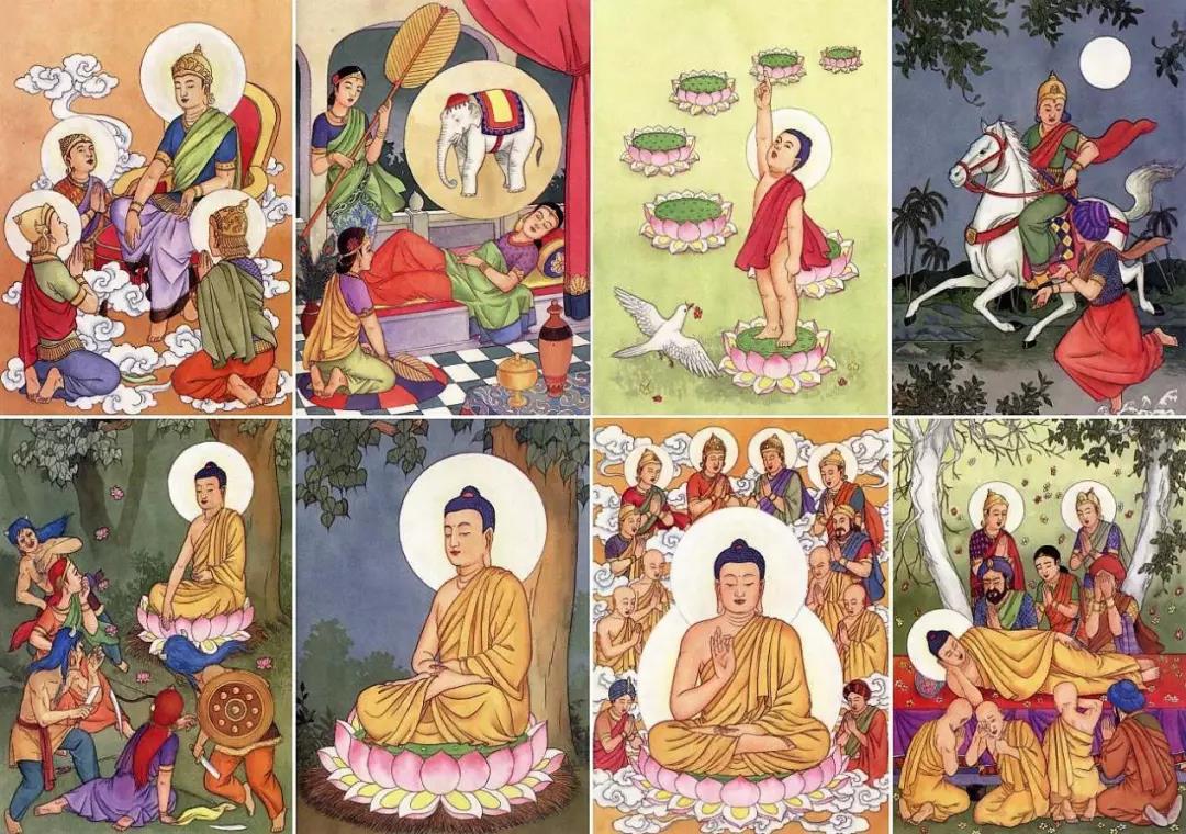 净饭王之子悉达陀长大之后,曾以太子身份与邻国公主耶输陀罗成婚,于十九岁出家求道,在沤楼鞞罗国中尼连禅河边的菩提树下示现六年苦修。净饭王爱子情切,不知儿子是否得道,是否生病,是否已经不在人世,所以常常派人前去探望悉达陀。使臣回来后向净饭王禀告说:"菩萨只剩下皮骨相连,生命已经极其微弱!要么是今天,要么是明天,看来是不久于人世了。"听到这样的消息,净饭王无比愁苦,心想:"我的儿子啊,既不肯做转轮王,又作不成佛,这是何等的凄苦,难道就这样无得而终了吗!"