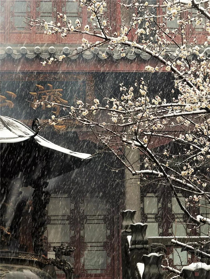 寺院墙角的几枝梅花,冒着严寒独自盛开。为何远望就知道洁白的梅花不是雪呢?因为梅花隐隐传来阵阵的香气。