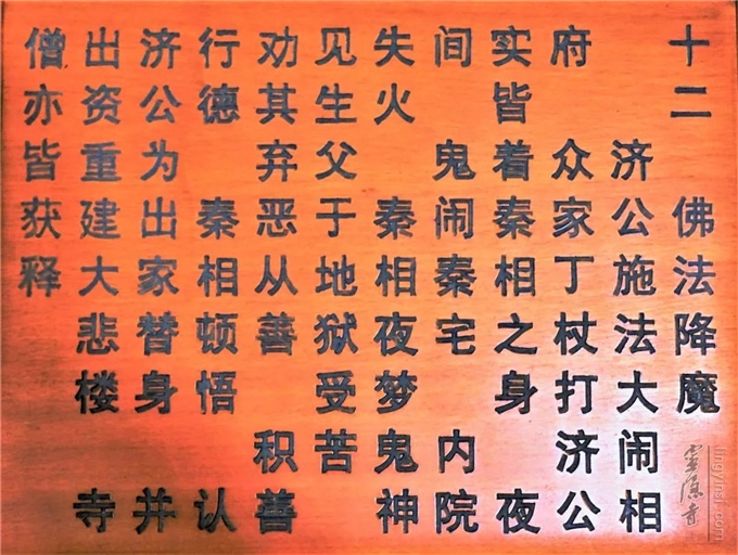 秦相梦鬼神,见生父于地狱受苦,劝其弃恶从善,积善行德。秦相顿悟,认济公为出家替身,并出资重建大悲楼,寺僧亦皆获释。