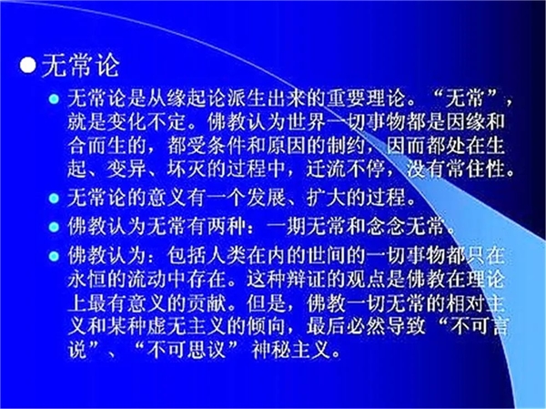 “无常”,在佛教中作为三法印(诸行无常,诸法无我,涅盘寂静)之一,指一切有为法,即种种因缘所生的万物,无论是物质的“色法”,还是精神的“心法”,都是生灭变化,不可常住的。